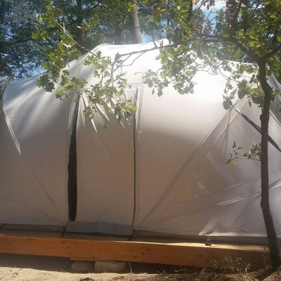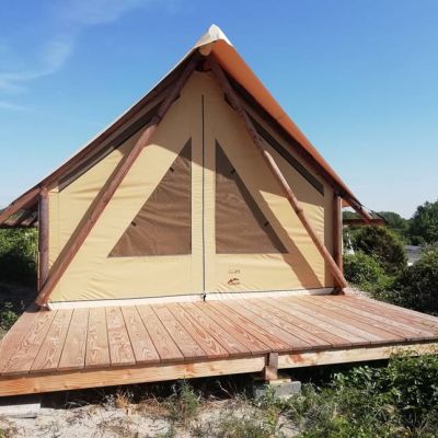 Si vous cherchez à changer d'air, l'Ecochique est faite pour vous. Il s'agit d'une tente très résistante sur un plancher bois pouvant accueillir jusqu'à 3 personnes et dispose de chambres, d'un coin cuisine / pièce à vivre. Les 2 fenêtres et la toile en coton offrent une luminosité très agréable, tandis que les chambres sont placées sous des toiles opaques afin de préserver le confort du sommeil.